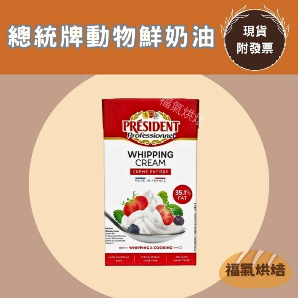 【福氣烘焙】總統牌動物性鮮奶油 1L <冷藏宅配> 法國鮮奶油 總統鮮奶油 鮮乳脂 蛋糕烘焙鮮奶油
