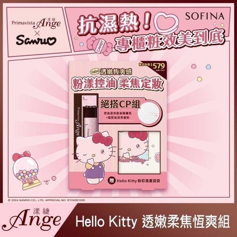 (全新)SOFINA 漾緁 hello kitty 透嫩柔焦恆爽組 漾緁控油瓷效妝前隔離乳進化版 超控油清爽蜜粉