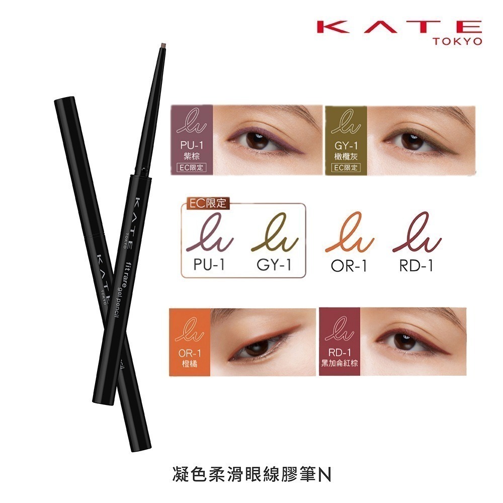(全新特殊色)KATE 凱婷 凝色柔滑眼線膠筆N 橙橘 黑加侖紅棕 0.08g 眼線膠筆