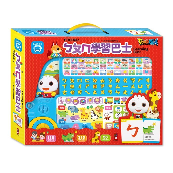 跟著注音巴士出發吧!115個按鈕、315個聲音,搭配50張學習圖卡,多功能拼音學習,讓孩子樂在其中!