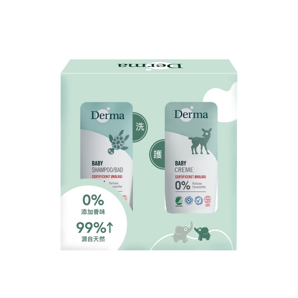 Derma丹麥德瑪 寶寶隨身瓶套組 洗髮沐浴露15ml+護膚霜15ml