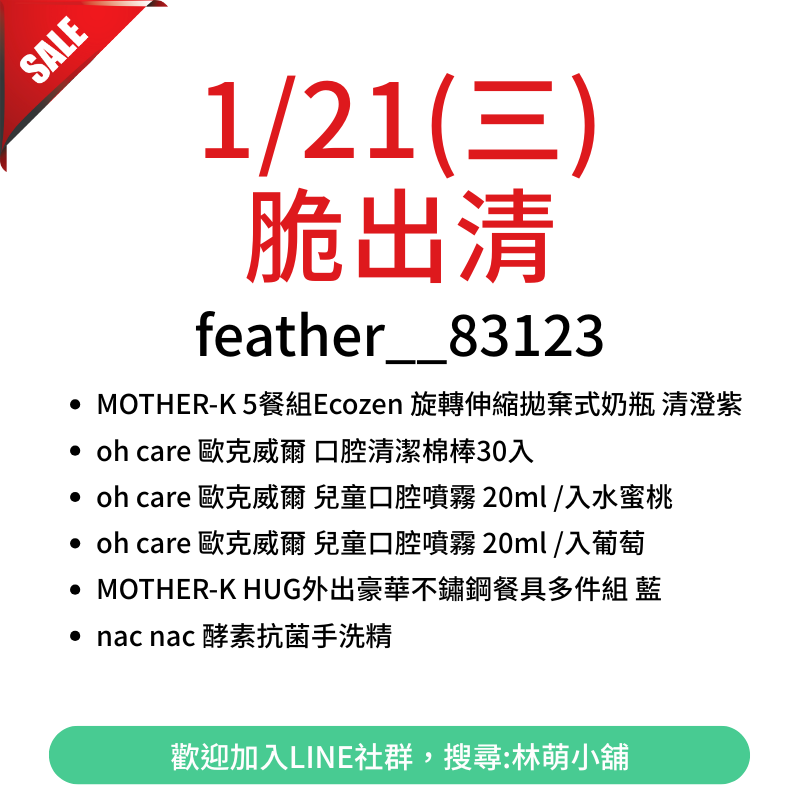 | 1 | oh care 歐克威爾 兒童口腔噴霧 20ml /入水蜜桃 | 189 |