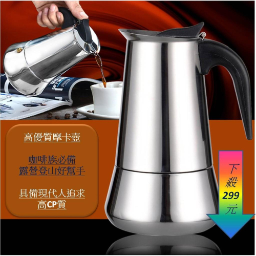 [外銷款] 歐式經典咖啡 摩卡壺 4人份 露營用咖啡壺 露營摩卡壺 304不鏽鋼 咖啡壺 義式咖啡 美式咖啡 咖啡用品