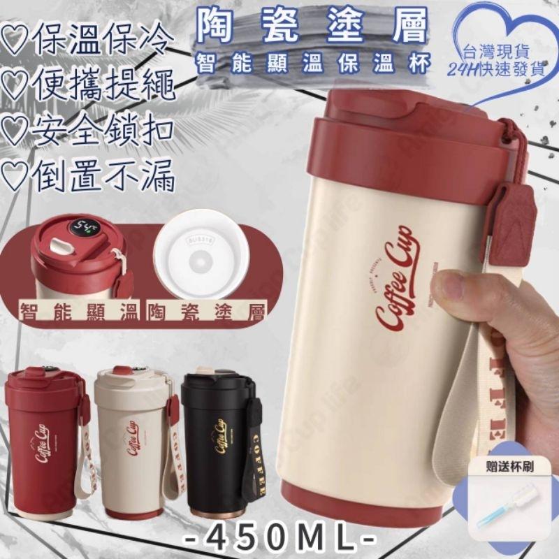 《台灣秒發》陶瓷內膽保溫杯 智能顯溫陶瓷保溫杯 316不銹鋼智能保溫杯 智能顯溫保溫杯 便攜提手保溫杯 陶瓷智能保溫杯
