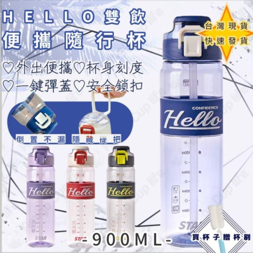 【台灣秒發】運動大容量 吸管水杯 900ml 運動水壺 學生水杯 網紅水杯 手搖杯環保水杯 隨手杯 韓式水杯 優質水杯