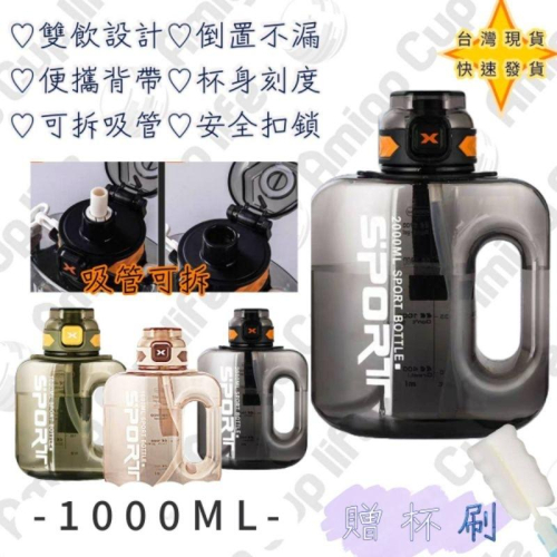 [台灣現貨免運] 迷你 健身水壺 1L 吸管水壺 大容量水杯 防漏吸管水壺 便攜吸管水壺 可斜背水壺 運動水杯 健身水杯