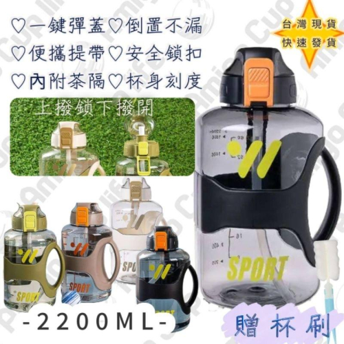 🧧2025春季最新上市水壺🧧 限期促銷:春季特惠199元 💯最近市場上仿品越來越多,粗糙的品質便宜的價格,但使用再生塑膠,大家千萬小心💯 https://s-cf-tw.shopeesz.com/file/tw-11134208-7rbk8-m6o7ame46kov3c https://s-cf-tw.shopeesz.com/file/tw-11134208-7rbk4-m6o7ame47z9b77 🏆🏆耐高溫款: 耐溫100度🏆🏆 (1)食品級PC材質 安全無毒 (2)彈蓋式設計>自帶安全鎖 (3)剛剛好大容量2200ml (4)新款伸縮式吸管(吸管可拆除再安裝) (5)堅固質感提繩 (6)獨立手柄設計(隔熱)把手不卡髒污 塑膠的產品一分錢一分貨,便宜您也不一定用得安心,貴的也不一定放心。 👍(進口食品級PC材質)👍 https://s-cf-tw.shopeesz.com/file/tw-11134208-7rbk4-m6o7ame49dtr86 https://s-cf-tw.shopeesz.com/file/tw-11134208-7rbk3-m6o7ame4ase7bc https://s-cf-tw.shopeesz.com/file/tw-11134208-7rbka-m6o7ame4c6yn84 商品名稱 : 第二代獨立握把_高質感大容量噸噸桶 商品介紹 : 這是一款不怕摔的塑料杯,,重點是此款使用材質安全無毒,附上可拆式吸管,2種模式隨您選擇(用吸管/不用吸管)讓您可以安心使用。 商品容量 : 滿水容量:2200ml (耐高溫版) 商品尺寸 : 高24.5cm/杯口直徑3.5cm底部12cm 商品材質 : 食品級PC/PP杯蓋/矽膠吸管 商品顏色 : 神秘黑/摩卡咖/天使白/橄欖綠 https://s-cf-tw.shopeesz.com/file/tw-11134208-7rbk4-m6o7ame4dlj35b https://s-cf-tw.shopeesz.com/file/tw-11134208-7rbkd-m6o7ame4f03j3c https://s-cf-tw.shopeesz.com/file/tw-11134208-7rbk9-m6o7ame4genz3f https://s-cf-tw.shopeesz.com/file/tw-11134208-7rbk9-m6o7ame4ht8fee 耐熱溫度: -10~110度 耐高溫版 食品級PC ~現貨供應中~下單再加送杯刷~(有數量代表現貨) 非預購但難免遇到缺貨,下單前可先詢問
