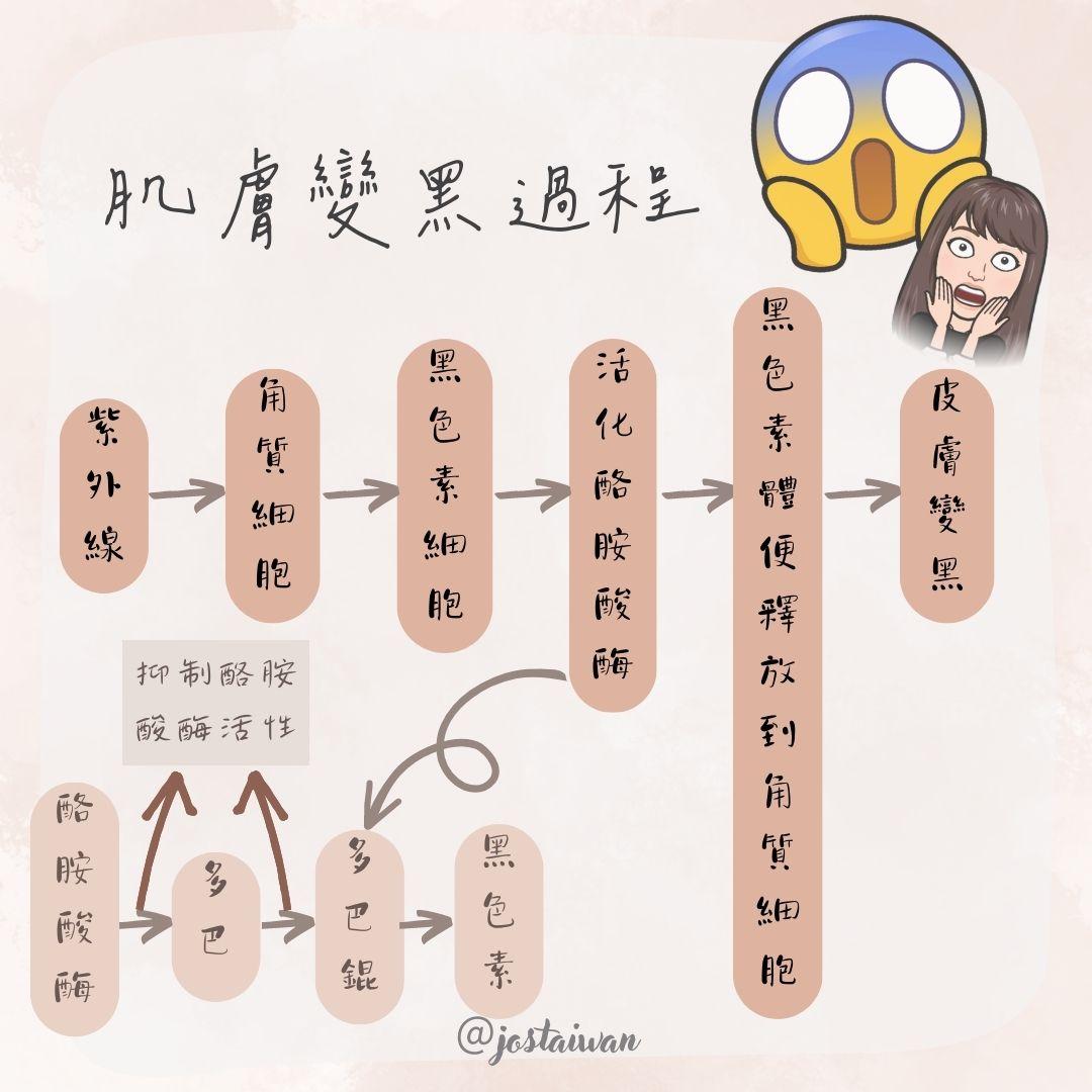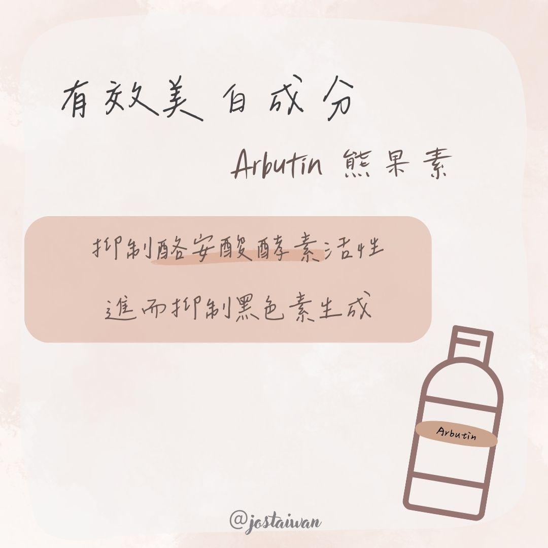 Arbutin 熊果素:抑制酪氨酸酶活性,進而抑制黑色素生成。