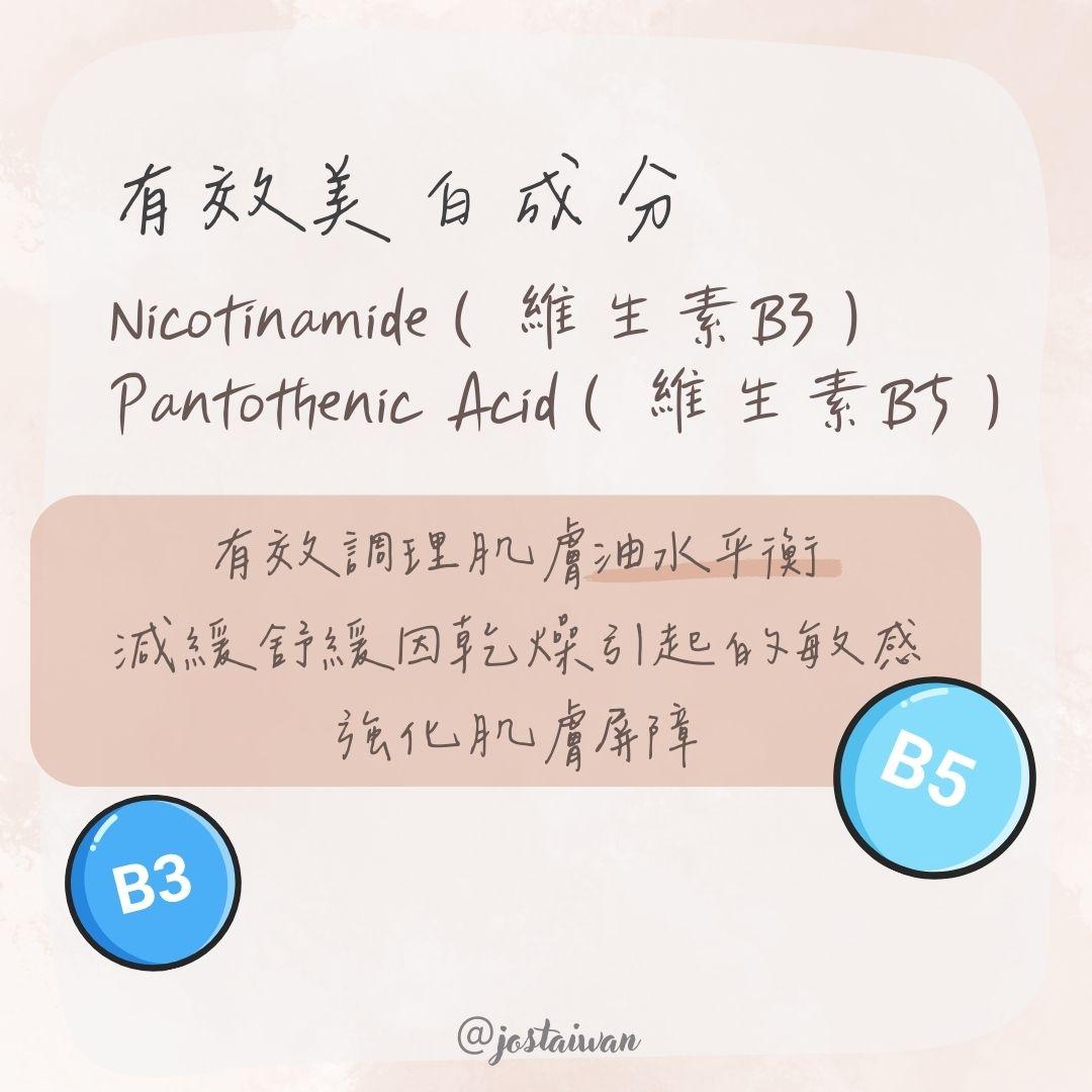 強烈添加 人體肌膚必需維他命 菸鹼醯胺Nicotinamide(維生素B3)+泛酸Pantothenic Acid(維生素B5)