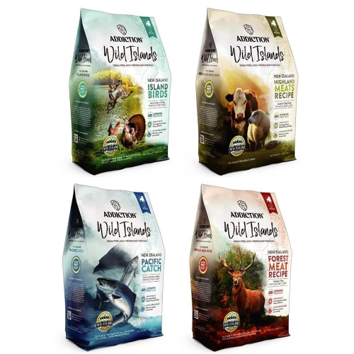 鹿肉、鹿心、鹿肚、魚粉、蠶豆、豌豆蛋白、牛脂、蛋、青豆、乾燥啤酒酵母、木薯、黃豌豆、亞麻籽、綠唇貽貝、麥盧卡蜂蜜、奇異果、牛肉粉、天然香料、天然緩衝醋、氯化膽鹼、牛磺酸、DL-甲硫胺酸、鋅胺基酸複合物、鐵胺基酸複合物、碳酸鈣、菸酸(維生素B3)、維生素E補充物、銅胺基酸複合物、錳胺基酸複合物、硝酸硫胺明(維生素B1)、d-泛酸鈣(維生素B5)、亞硒酸鈉、核黃素補充物、鹽酸吡哆醇(維生素B6)、維生素A補充物、生物素、維生素B12補充物、硫酸鈷、葉酸、碘酸鈣、維生素D3補充物,混合生育酚增加鮮度、迷迭香萃取物、茶萃取物、薄荷萃取物