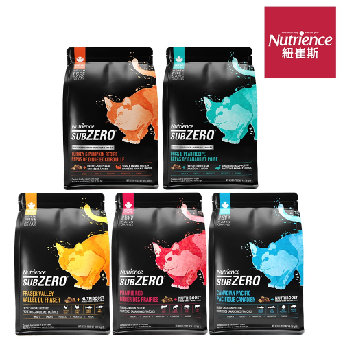 去骨雞肉、去骨火雞、雞肉茸、火雞茸、雞肝、火雞肝、豌豆、豌豆蛋白、雞脂(用混合生育酚和檸檬酸保存)、天然香料、苜蓿粉、鮭魚、鱈魚、雞肉凍乾、魚油、豌豆纖維、氯化膽鹼、食鹽、牛磺酸、菊粉、氯化鉀、蛋白鋅、DL-蛋氨酸、紅薯凍乾、南瓜凍乾、綠唇貽貝凍乾、鱈魚肝凍乾、海帶凍乾、蘋果、藍莓、紅蘿蔔、蔓越莓、生薑、南瓜、維生素E補充劑、蛋白鐵、L-抗壞血酸-2-多磷酸鹽、菸鹼酸補充劑、嗜酸乳桿菌、乾酪乳桿菌、腸球菌、雙歧桿菌、絲蘭萃取物、D-泛酸鈣、蛋白錳、葵花籽油、核黃素補充劑、維生素A補充劑、蛋白銅、單硝酸硫胺素、維生素B12補充劑、甲萘醌複合亞硫酸氫鈉、鹽酸吡哆醇、生物素、菜籽油、亞硒酸鈉、維生素D3補充劑、葉酸、碘酸鈣、迷迭香萃取物
