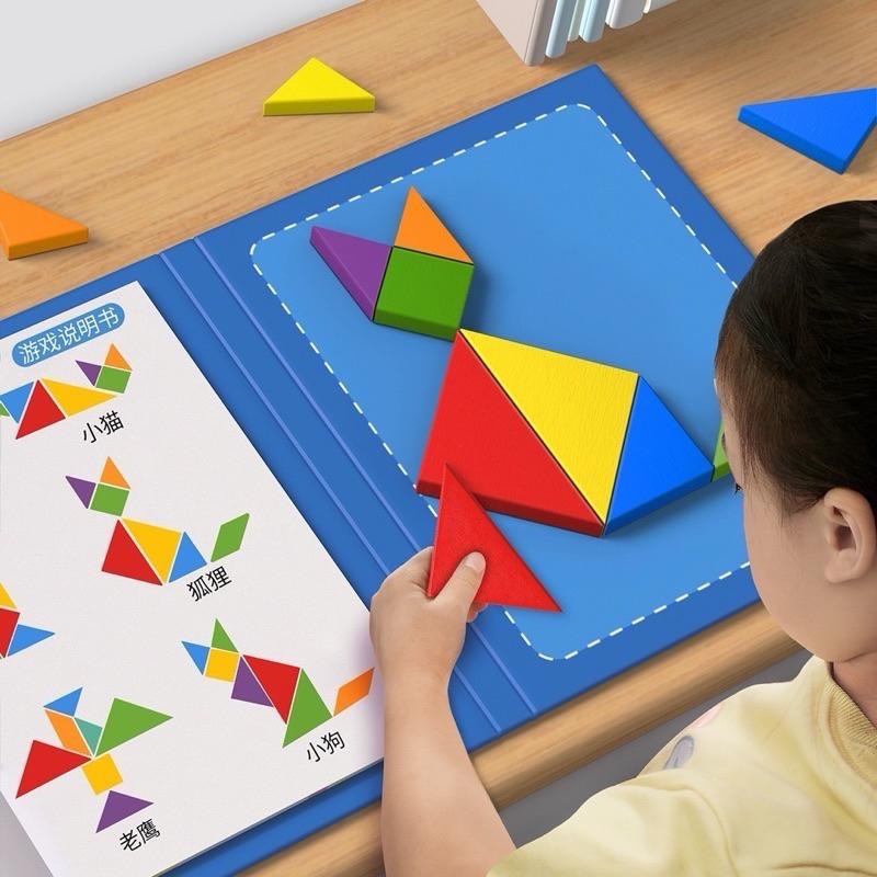 啟蒙七巧板 磁力七巧板 腦力開發玩具 七巧拼 形狀想像教具 益智七巧板 木製拼圖 益智拼圖書 幼稚園教具 蒙氏早教