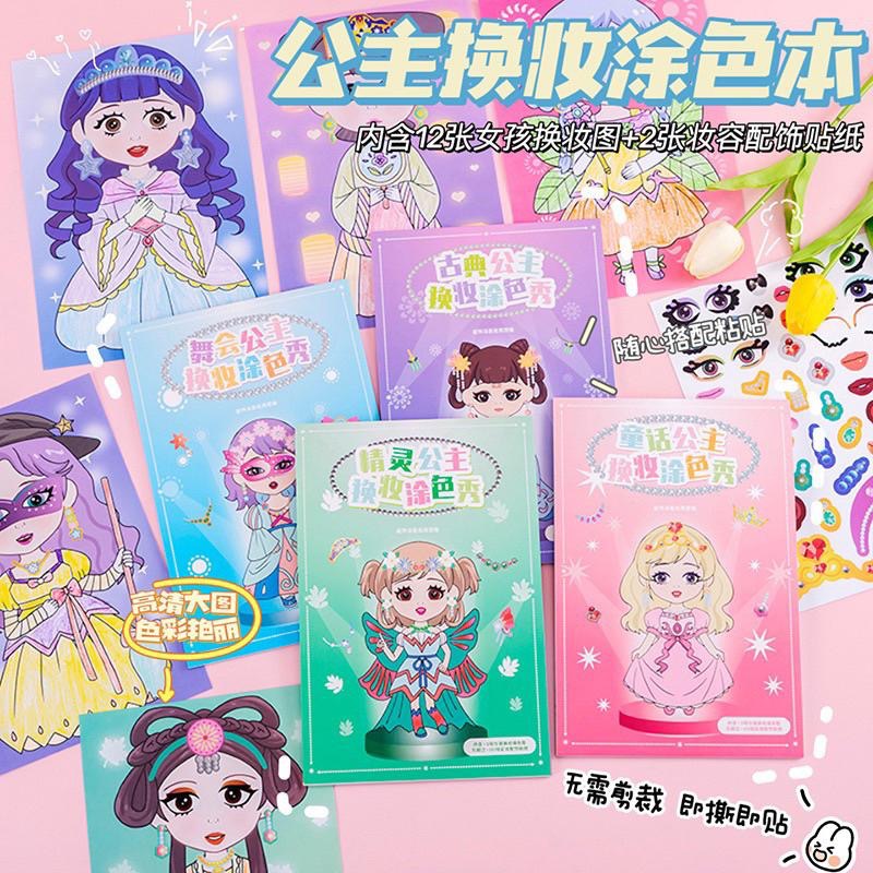 👸 著色公主貼紙本 💫 加大版換裝貼紙書 公主著色本 DIY貼紙本 兩用貼紙塗色本 漂亮貼紙塗鴉書 畫本 貼紙