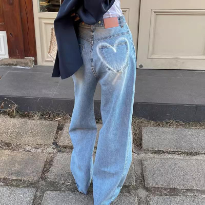 設計感!高腰款超顯瘦💗 韓版水洗噗通愛心牛仔寬褲(S-L)女裝 韓系 休閒褲 牛仔褲 拖地褲 落地褲 顯瘦 修飾