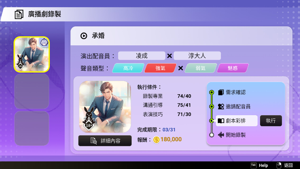獨自成立了錄音工作室,卻陷入經營危機,只得以協助友人錄製「BL Drama」,來緩解財務狀況。