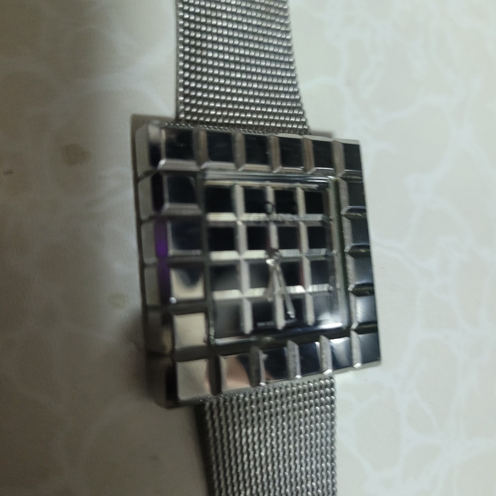Nono銀色方塊男女經典蝴蝶釦手錶