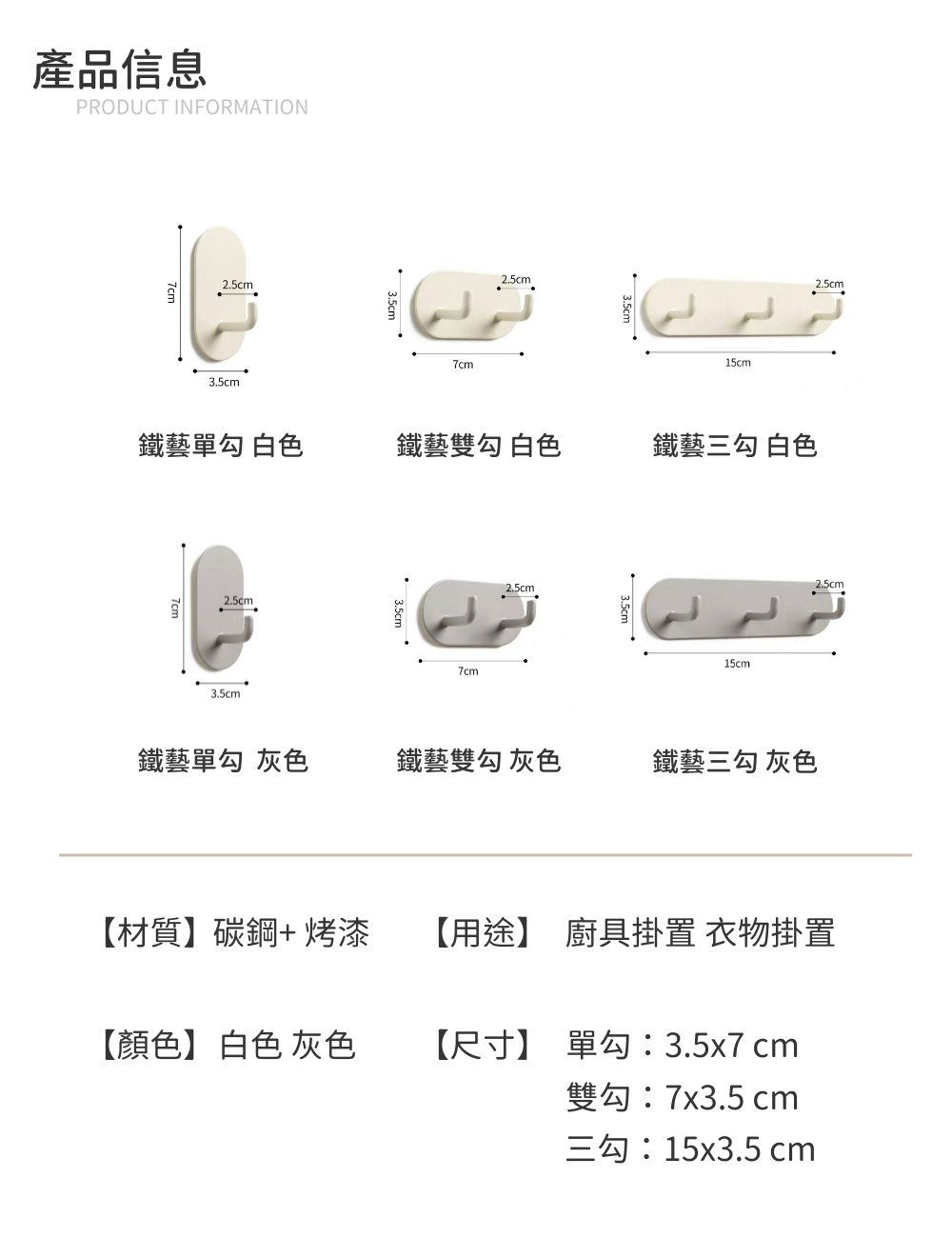 尺寸: 單勾:3.5x7 cm