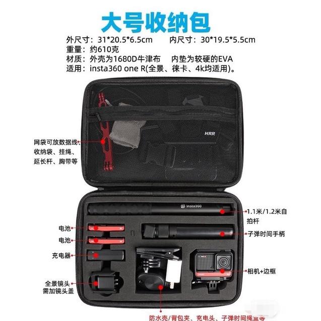 insta360one rs 收納包 360全景運動相機套裝包旅行便攜包 手提防水收納盒insta360 one r配件保護盒 insta360 one RS/R通用收納包