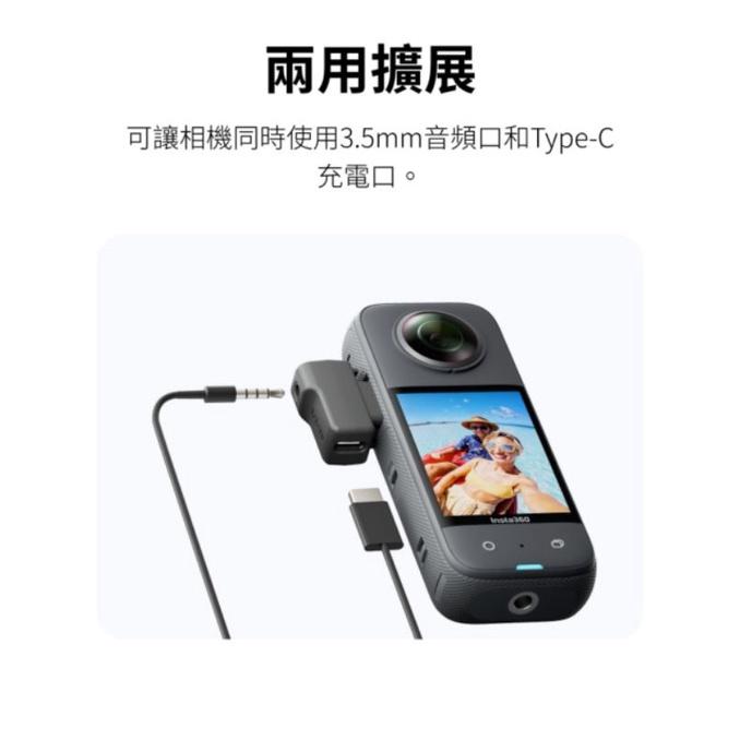 影石Insta360 X3充電音頻轉接配件 ONE X3同時充電加收音組合 改善錄音質量,連接麥克風的同時還可以支持充電或數據傳輸 外接麥克風至您的相機 專為 Insta360 X3 設計,可在全景拍攝時完全隱形 , 可同時使用 3.5mm 音頻接口與 Type-C 充電接口 全新正品無包裝盒. 下單前請先確認是否有現貨?