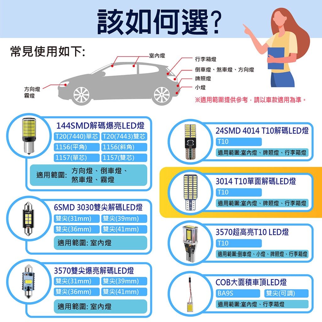 ★對應T10/T15燈座,適合多種車種。(部分T10燈室不適合)