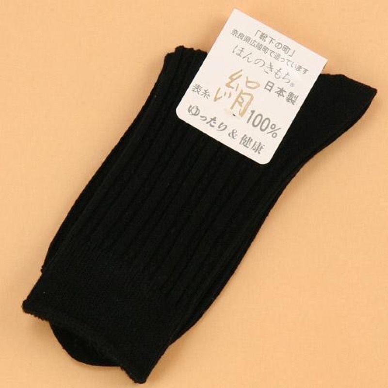 日本製 襪子 絹100% 日本 長襪 長筒襪 基本款 黑色*10