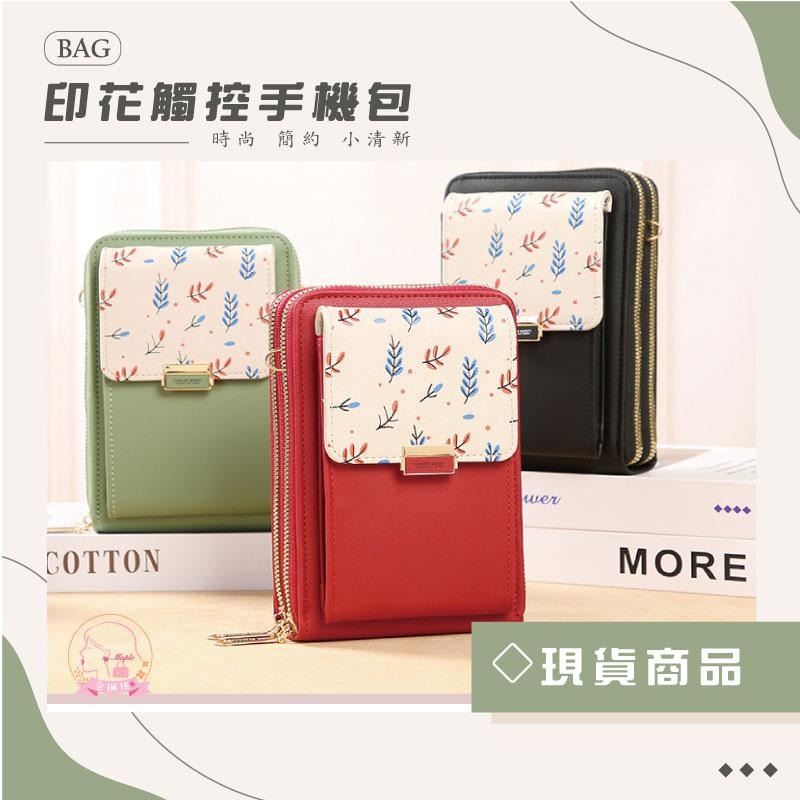 韓版時尚ins潮簡約百搭清新樹葉印花撞色觸控手機包 包 單肩斜挎 零錢包 時尚鑰匙包學生上班族逛街旅遊約會 生日禮物