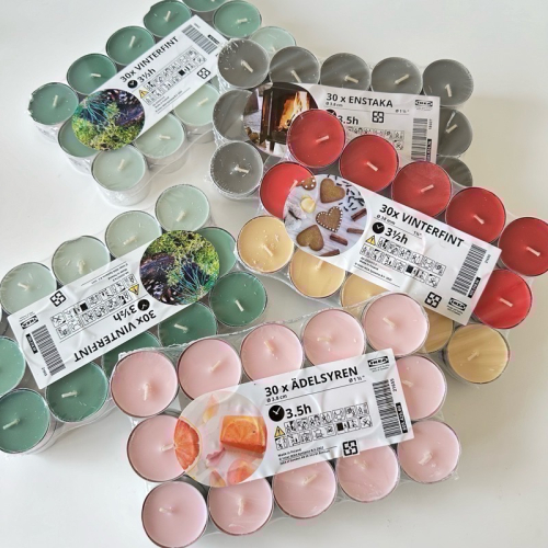 《現貨》【IKEA】ÄDELSYREN 芳香小蠟燭 30顆入 3.5小時 葡萄柚&玫瑰-淺粉紅色