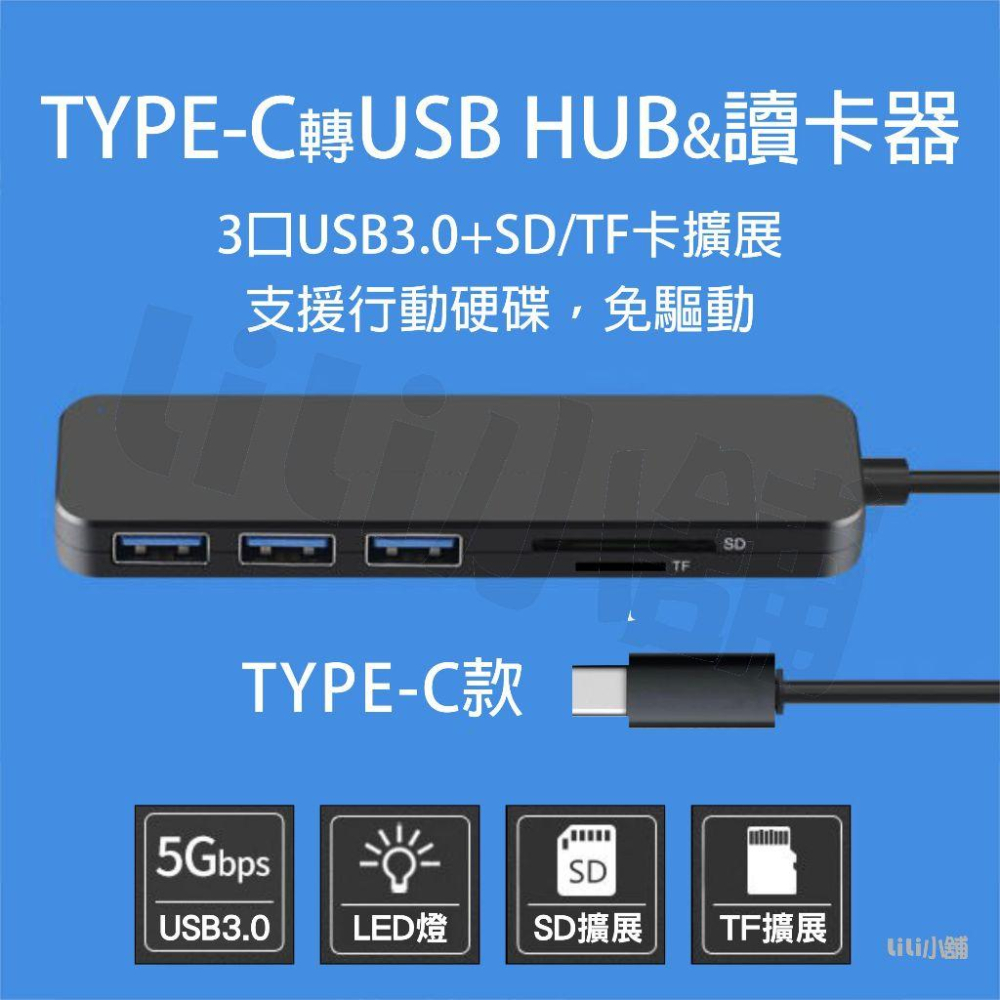 HUB USB3.0 Type-C 接口 擴展器 高速 集線器 SD TF卡 讀卡器 電腦 平板 手機