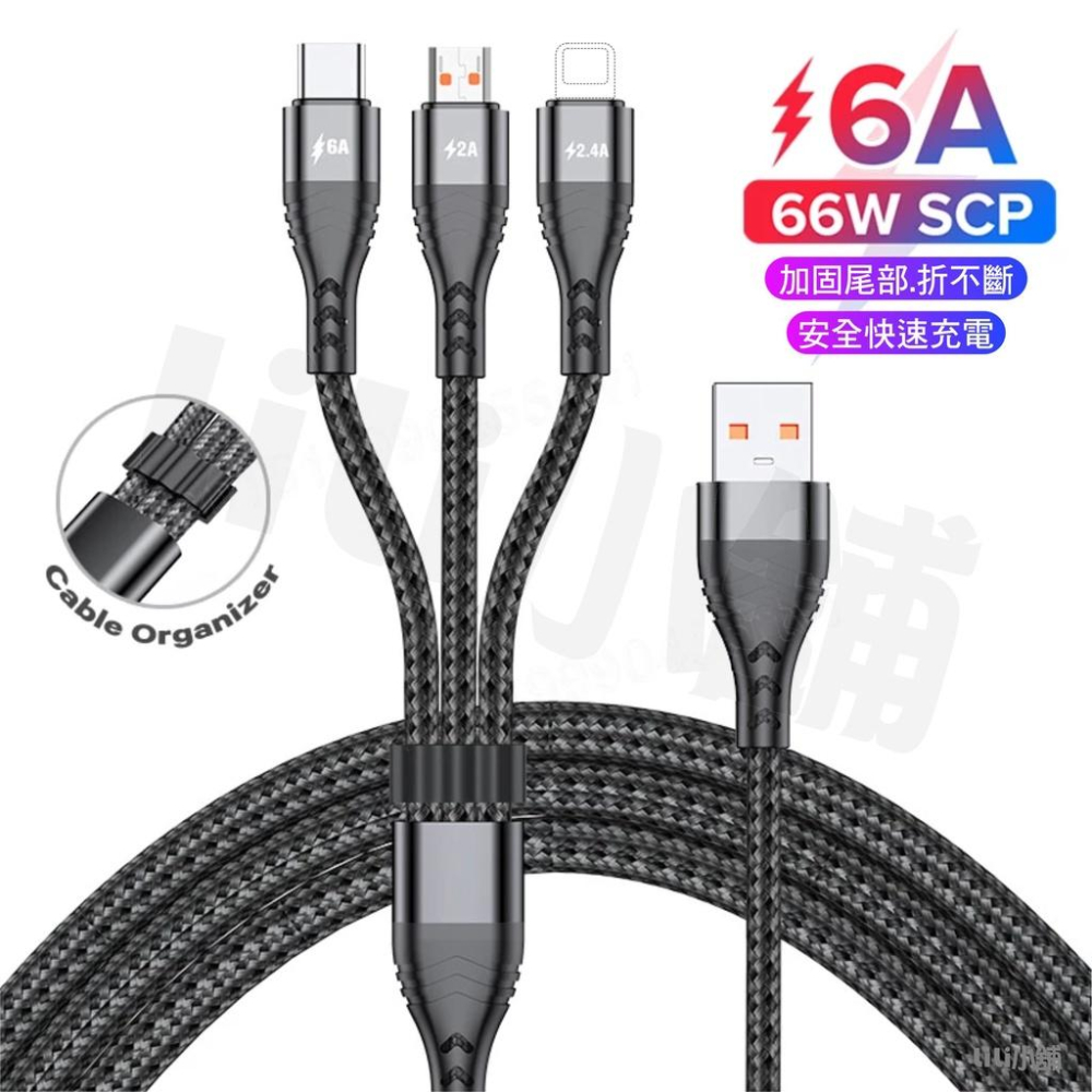 一分三充電線 6A 大電流 三合一 超級快充 VOOC閃充 雙引擎閃充 安卓 Type-C 蘋果