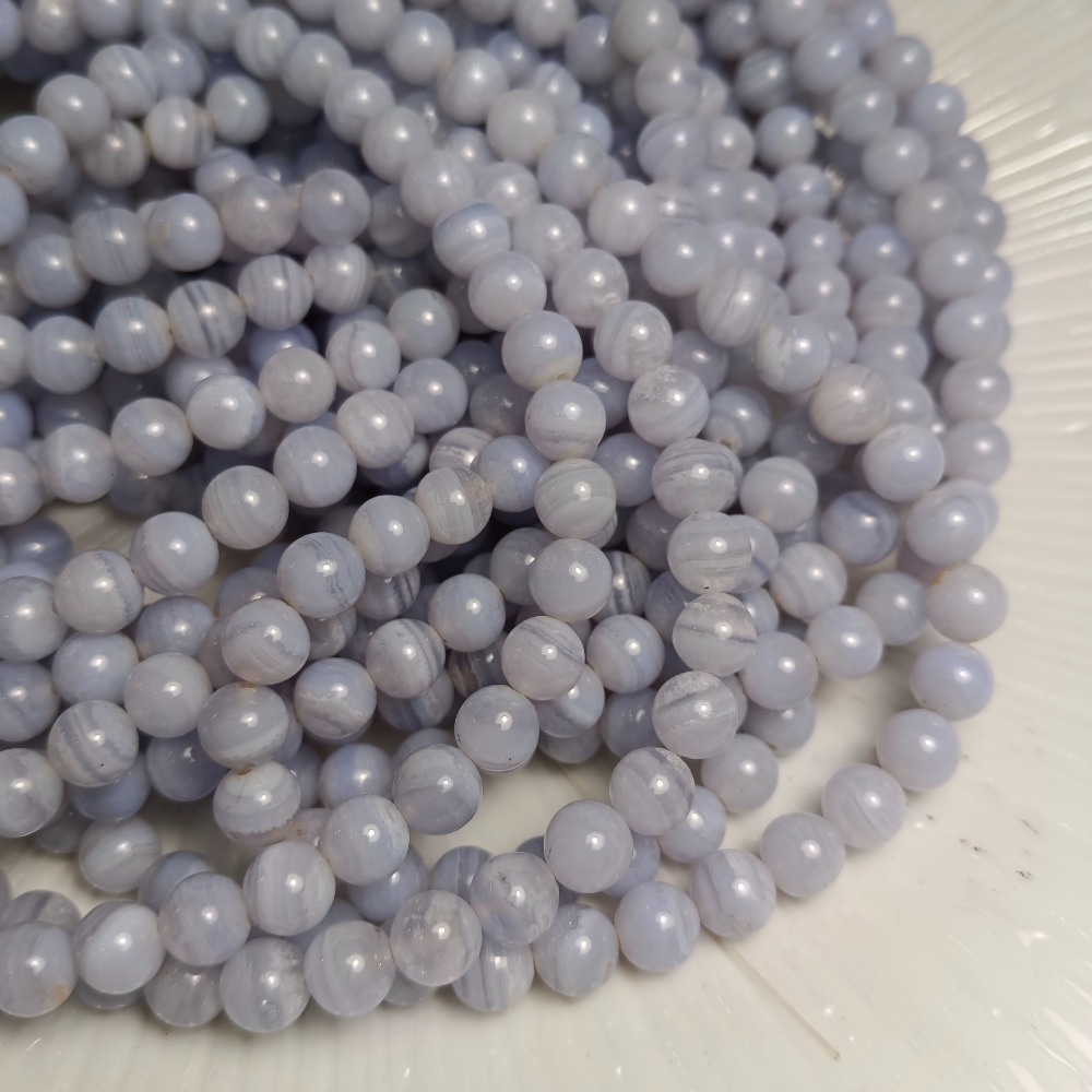 星河丸玉 | 條珠 | 蕾絲瑪瑙、天然藍紋瑪瑙 圓珠7mm整條38cm