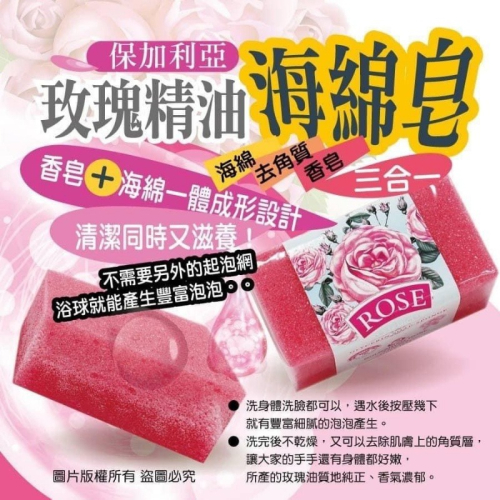 保加利亞正品!玫瑰精油皂+海綿 /70g🔥 ✨✨跟香奈兒Chanel同款精油的洗臉皂✨✨歐洲明星貴婦的最愛~ 香皂海綿一體化! 💪我們保證正品喔!! 🌹清潔+滋養一次完成 🇧🇬產自保加利亞老牌 Bulgarian Rose 大馬士革玫瑰~~ 很多化妝品保養品廠家其上等玫瑰系列產品所選用的玫瑰大多產自保加利亞。 🌹保加利亞玫瑰有限公司,創建於1948年,是唯一以國家名命名的精油護膚美容品牌,是全球少數有能力生產100%天然玫瑰精油的品牌。 🌹低泡香皂,洗後不干燥。還有甘油保濕成分、玫瑰精油成分,清潔的同時還有保濕滋潤的效果,長時間使用還能提亮膚色。 ⭐️⭐️超神奇的保加利亞玫瑰海綿香皂: 一面是搓澡的海綿 一面是玫瑰香皂!! 完美地結合了海綿與香皂部分 還有還有去角質的功效! 🌹內含珍貴的保加利亞玫瑰水合物,可以清潔並滋潤肌膚,適合所有皮膚類型及日常使用。 充盈的肥皂泡沫與保加利亞含油玫瑰的香氣,輕柔按摩您的肌膚,玫瑰水滋養保濕並舒緩肌膚。 是一款相當特別的優質產品,期待您的愉悅體驗 ! 保加利亞玫瑰—卡爾洛沃從玫瑰蒸餾液中提取生產保加利亞玫瑰油和玫瑰水已經有超過65年歷史了。 保加利亞玫瑰油是最昂貴,最珍貴和全世界都需要的精油,給我們帶來芳香,寧靜和純淨之感。 玫瑰油和玫瑰水是獨一無二的天然配方,在所有玫瑰系列的美容產品中都含有。 玫瑰油含有超過200種珍貴物質,對人們的身體有奇妙的作用,使其在美容產品成分中成為不可替代的原料。 保加利亞玫瑰油和玫瑰水具有強大的抗炎,再生和抗菌效果,是肌膚清潔,保濕,滋潤的理想藥劑。 維持肌膚的脂質平衡,刺激受損和衰老組織的再生,緩和和消除炎症,進行抗氧化活動,延緩皺紋出現。 玫瑰ORIGINAL系列的美容產品會使人們沐浴在大馬士革玫瑰的天然芳香中,此系列產品已享譽全球並成為保加利亞的象徵。 玫瑰油溫柔迷人的芳香對人的身體有強大的香薰療效—緩和緊張的神經,是強大的催情劑和抗抑鬱劑。 玫瑰ORIGINAL美容系列是廣泛的,適合所有肌膚,包括最為敏感的肌膚 因產品含油玫瑰精油,孕婦不宜使用,過敏肌膚人群請先小範圍試用。 ⭐️⭐️使用方法:將雙手打濕,輕搓皂體,將揉搓出的泡沫塗抹在清潔處,隨後清水洗淨即可。使用後,將海綿皂倒置放置,即海綿部分朝下。 ⭐️⭐️原產國:保加利亞🇧🇬 ⭐️⭐️適用人群:適合任何肌膚 |