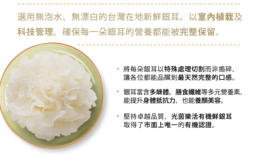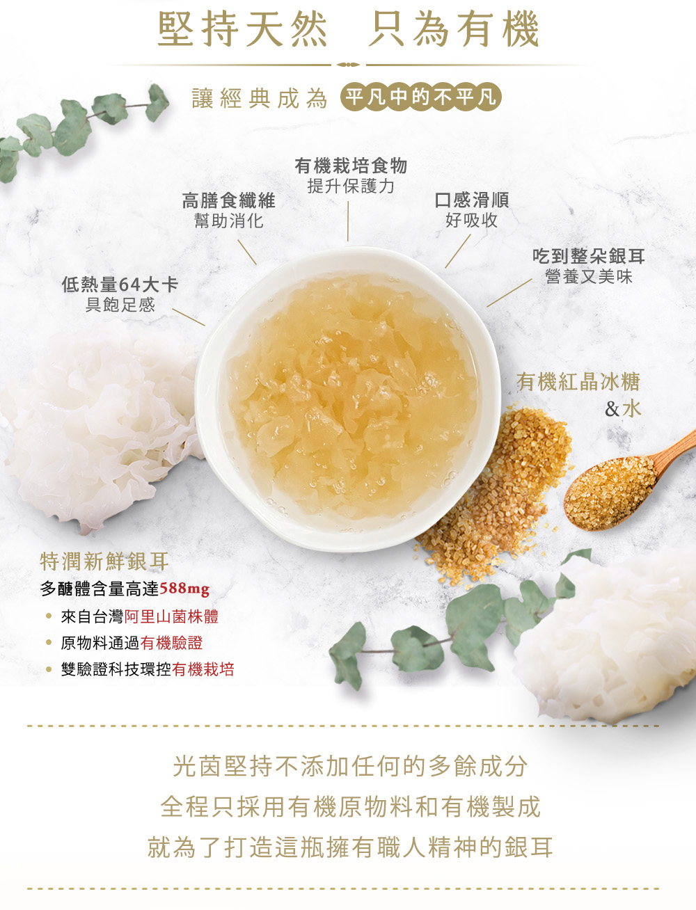 商品組合/規格:光茵樂活 有機鮮銀耳(280公克x6罐/盒)