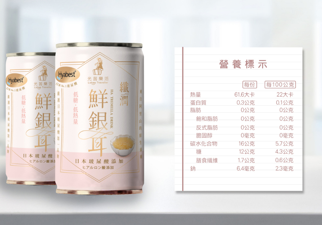 3.內容物名稱(成分):水、銀耳、冰糖、玉米來源可溶性纖維、玉米胚芽抽出物(糊精、玉米胚芽抽出物(含賽洛美))、流行鏈球菌發酵物(含透明質酸鈉)