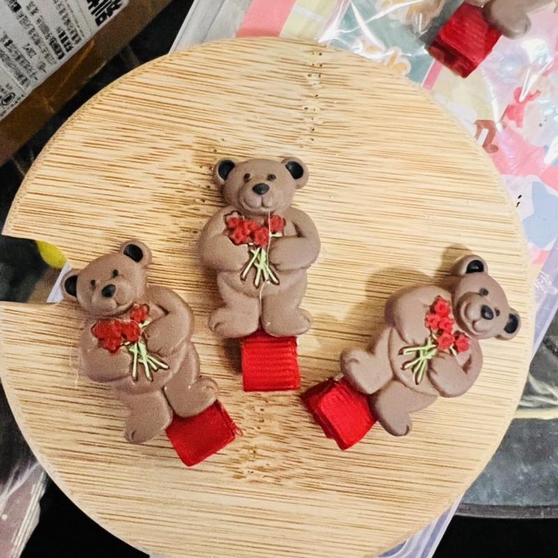 朱古力熊餅乾髮夾 復古髮夾 小熊髮夾 懷舊髮夾 童趣懷舊感可愛小熊 邊夾秋冬咖啡色 兒童髮夾 巧克力餅乾髮夾