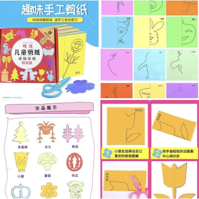 台灣現貨~趣味手工剪紙-內附96張圖紙+贈送安全剪刀!趣味手工剪紙 兒童剪紙遊戲 專為4-6歲兒童設計