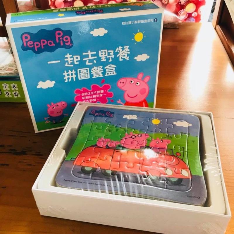 世一 粉紅豬小妹一起去野餐拼圖餐盒$199   ⚫️本產品內含6張超可愛的粉紅豬小妹20片情境拼圖 促進寶貝的小手肌肉發展,學習部分與整體的概念,培養耐心與專注力,大豆油墨印刷,使用更安全。本產品結合粉紅豬小妹的快樂與俏皮製作色彩鮮豔、圖素豐富的全彩情境拼圖,透過拼圖操作訓練孩子的推理力與思考力,強化整體與部分的慨念,塑造見樹也見林的觀念,並提升孩子的耐心,遊戲後能讓孩子更有信心,是培養冷靜思考的最佳教材。另外還能夠訓練手眼協調力,能強化小手的靈活度,讓手與眼在遊戲中相互配合。   *適讀年齡:3歲以上   *有注音 規格:盒裝 / 21.2 x 20.5 x 6.7 cm / 普通級 / 全彩印刷 / 初版