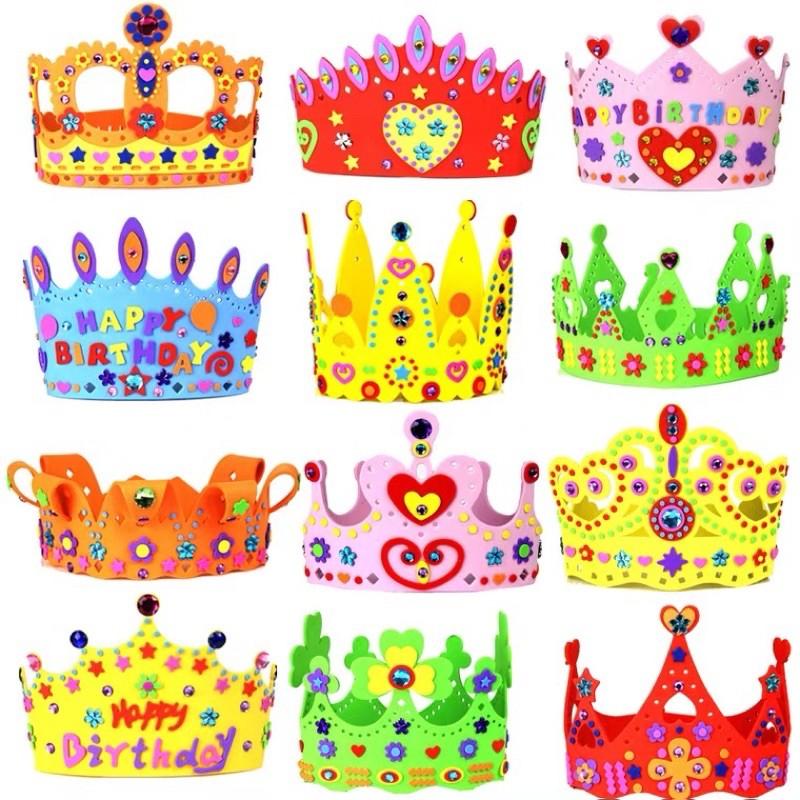 eva Diy皇冠帽 公主皇冠生日帽兒童diy手工製作材料包EVA皇冠帽子幼兒園創意粘貼畫週歲禮 兒童diy材料包
