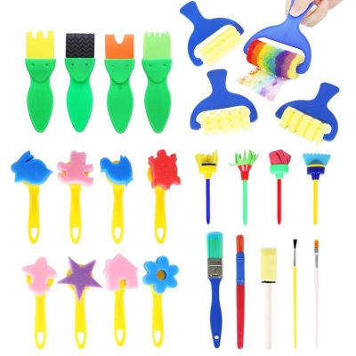 繪畫海綿印章25件特價~塗鴉小畫家組(水彩筆刷4入+旋轉刷畫組+拓印筆蓋印棒組+雙槽滾輪刷顏料盤)】手指膏顏料畫筆配件