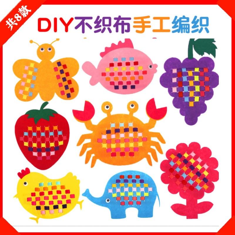 幼教-台灣現貨 不織布編織材料包 幼教玩具 教材兒童diy 編織 杯墊 不織布杯墊 編織diy 勞作手工玩具