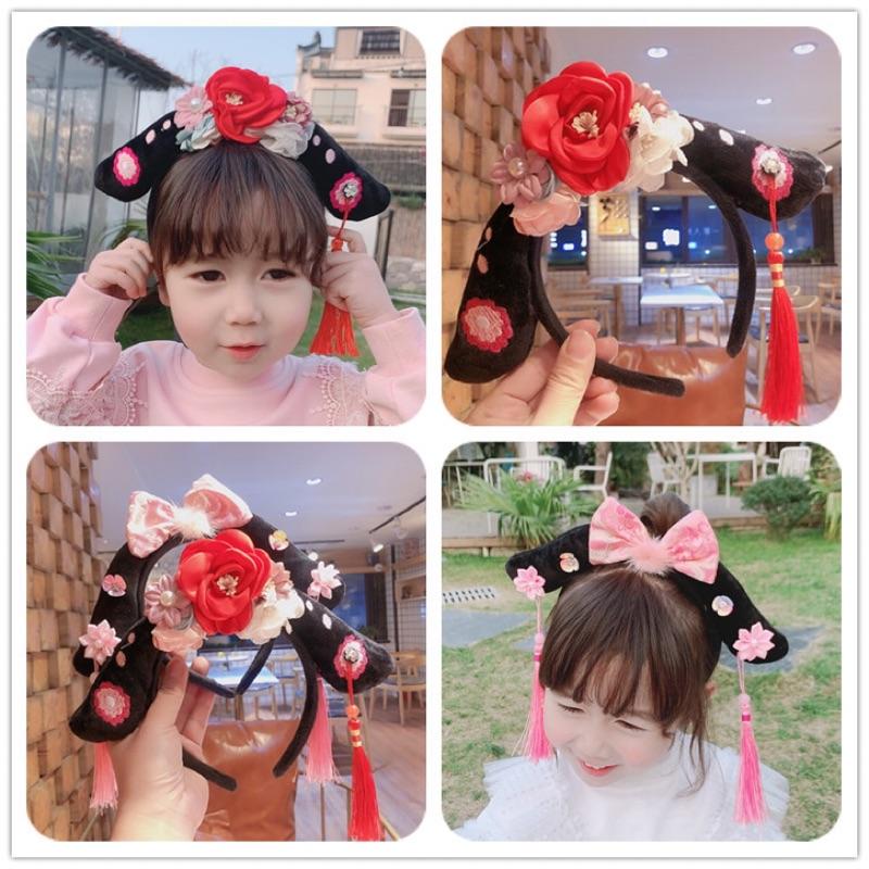 中國風花朵流蘇格格旗頭帽旗人兒童髮箍唐裝頭箍藝術拍照髮飾 $99 貴妃髮飾中國風寶寶髮飾格格髮飾搭配旗袍