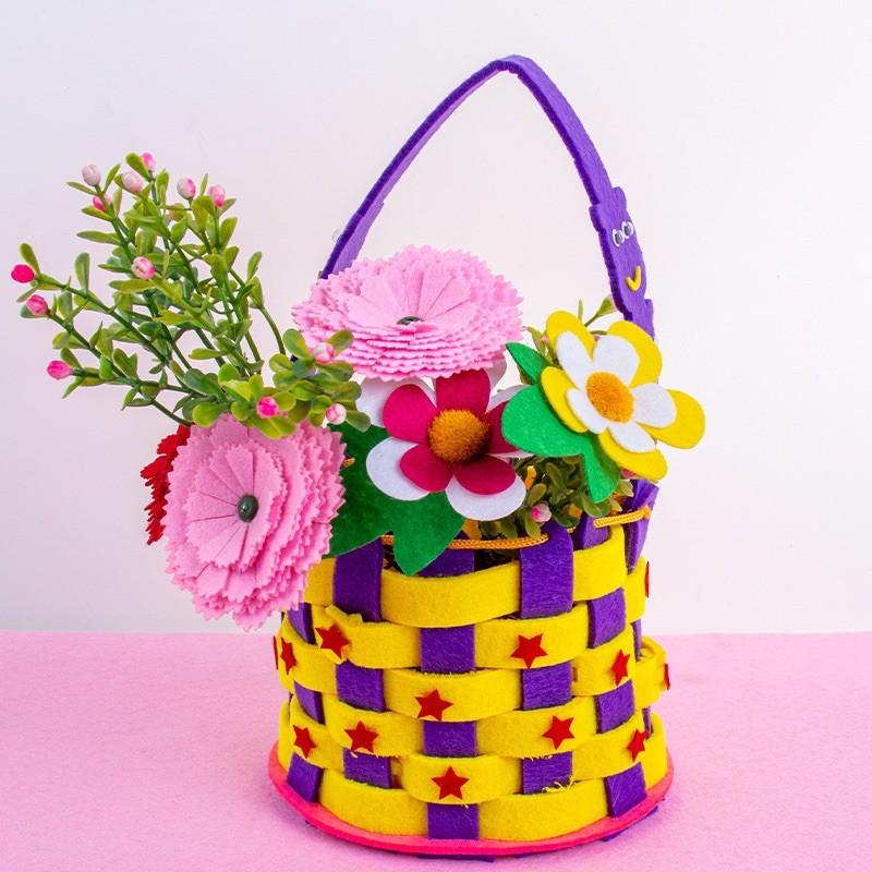 兒童diy玩具/台灣出貨 不織布手提籃兒童diy手工創意製作編織籃材料包幼兒園親子活動