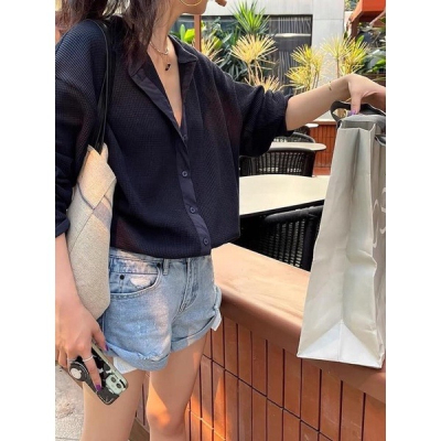 🤗🤗🤗 2022春夏華夫格肌理感隨性排釦開襟上衣
