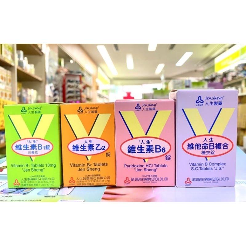 人生製藥 維生素B1錠(102錠)、維生素乙2錠(102錠)、維生素B6錠(100錠)、維生素B複合糖衣錠(102錠)