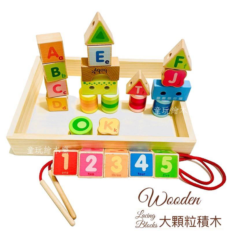 現貨《童玩繪本樂》BSMI檢驗合格 櫸木大塊積木 數字積木 字母積木 幾何積木 穿線積木 積木收納盒 串珠積木 串珠玩具