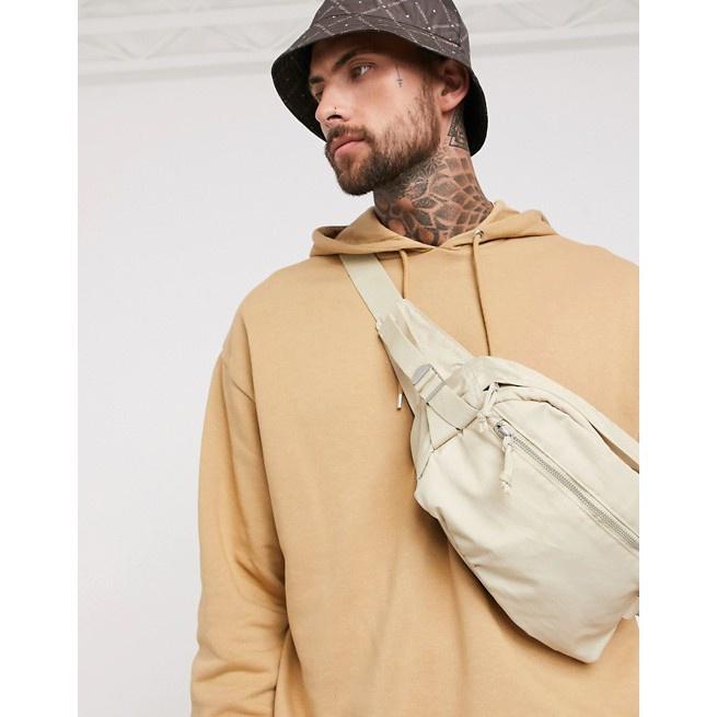 ASOS DESIGN oversized 寬版 舒適 男生 長袖帽T 前短後長開岔下擺 奶茶色/卡其色 XS號