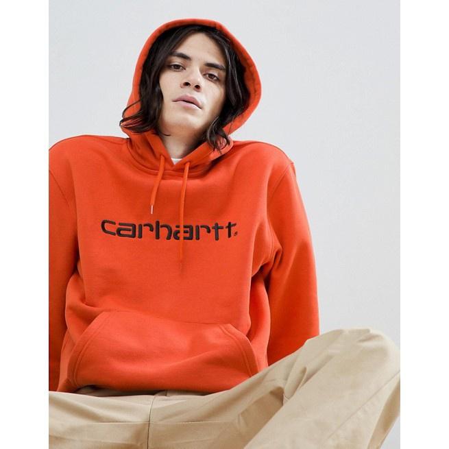 Carhartt WIP 經典LOGO刺繡連帽長袖 橘紅 embroidered hoodie in orange