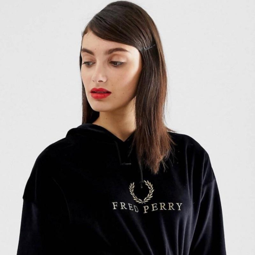 Fred Perry 金色復古LOGO刺繡 絲絨連帽長袖T velour hoodie uk8