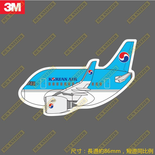 大韓航空 空中巴士 A320 A321 Q版 民航機 飛機造型 防水3M貼紙 尺寸90mm