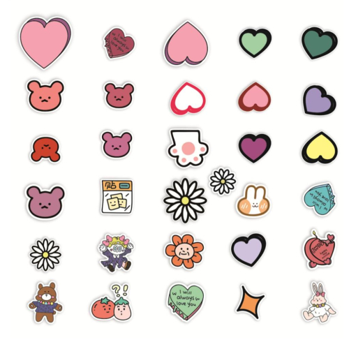 卡通可愛塗鴉 愛心 手繪小動物 兔兔 小熊頭 防水裝飾 31張 貼紙 筆電貼紙 行李箱貼紙 車貼貼紙 手機貼紙 水壺貼紙