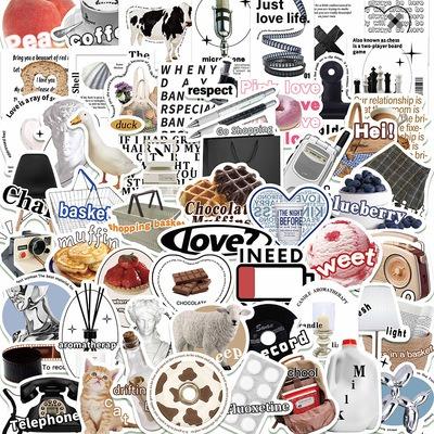 簡約生活 風格貼紙 可愛動物 英文單字 懷舊電話 55張 貼紙 筆電貼紙 行李箱貼紙 車貼貼紙 手機貼紙 水壺貼紙 收納